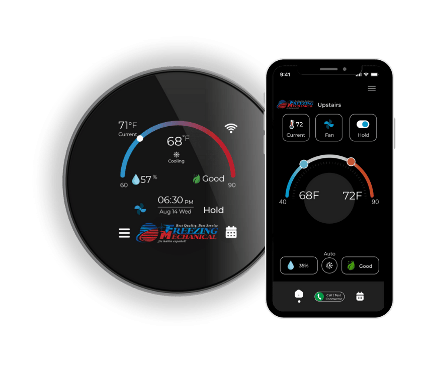 The Freeze Smart Thermostat is now included with any new air conditioning system installation. Experience the ultimate in smart climate control and energy efficiency with Freeze, seamlessly integrated into your new HVAC system. Contact us today to learn more and schedule your installation!